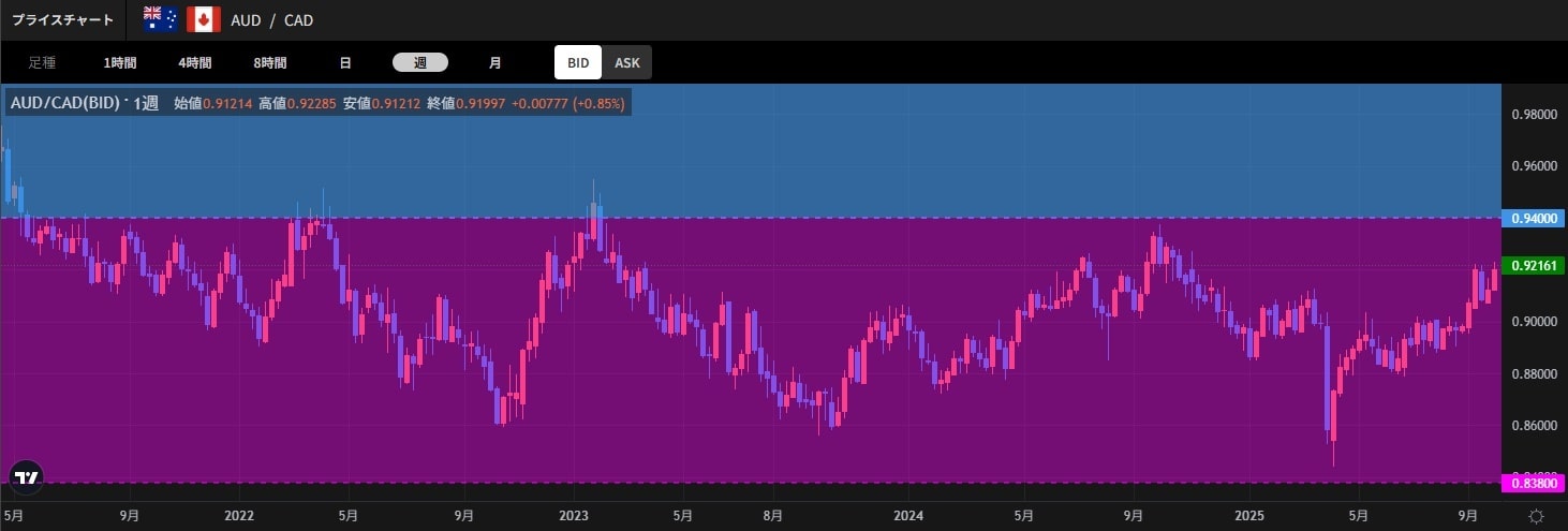 豪ドル/カナダドル(AUD/CAD)の最適値幅