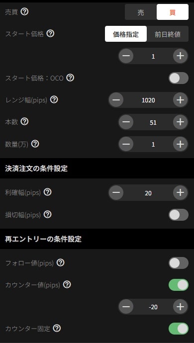 これは10,000通貨(1.0万)だと「2.0スウェーデン・クローナ」の利益金額を狙う設定になります。