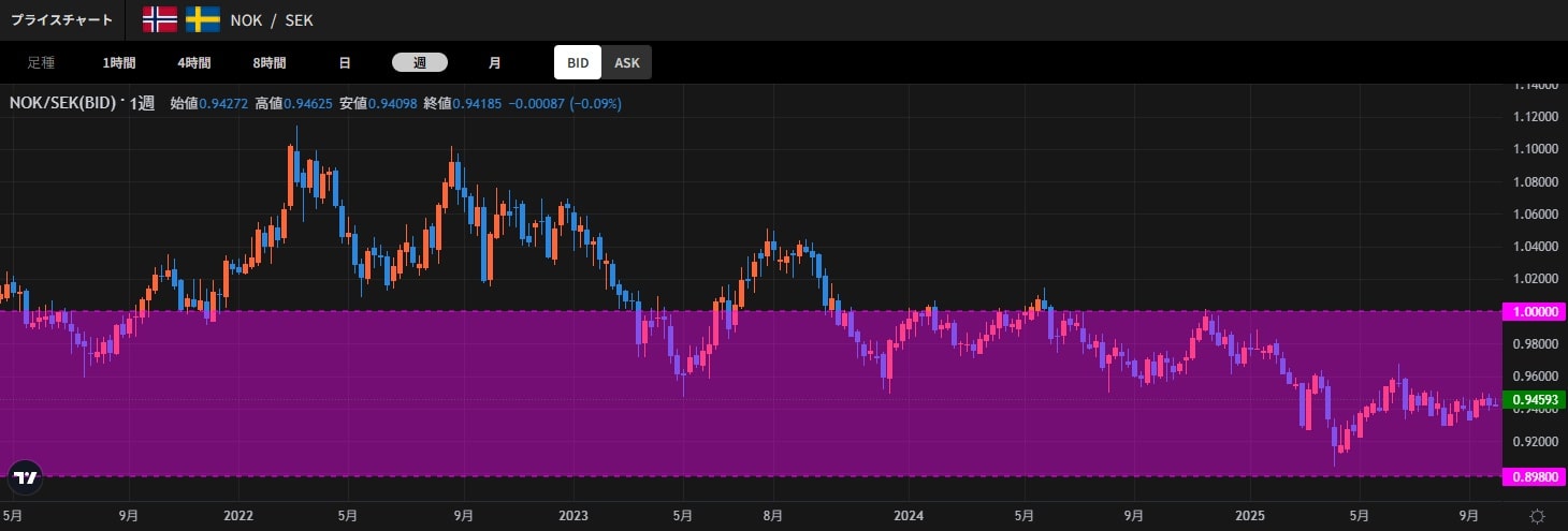 - 通貨ペア:ノルウェー/スウェーデン(NOK/SEK)